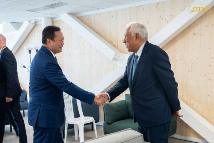Премиер-министрът на Камбоджа Хун Манет разговаря с председателя на Европейския съвет Антонио Коща по време на Третата конференция на ООН за океаните, проведена в Ница, Франция, съобщи камбоджанската информационна агенция АКП.