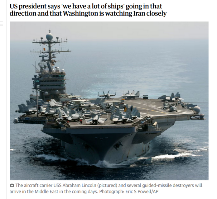 Самолетоносачът USS Abraham Lincoln, както и няколко разрушителя с управляеми ракети, се очаква да пристигнат в Близкия изток през следващите дни.