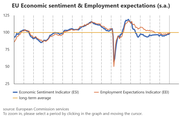 Икономическото доверие в еврозоната достига най-високото си ниво от 2023 г
