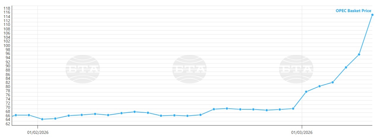 На 27 февруари, точно преди началото на военните действия на САЩ и Израел срещу Иран, цената на петрола на ОПЕК бе 70,07 долара за барел.
