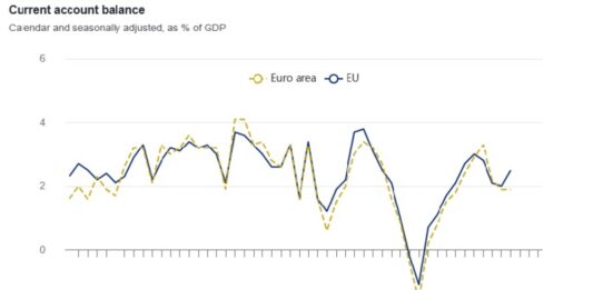 През първото тримесечие на 2025 г. сезонно коригираната текуща сметка по платежния баланс на ЕС регистрира излишък от 114 милиарда евро (+2,5 на сто от БВП) спрямо излишък от 88,9 милиарда евро (+2 на сто от БВП) през четвъртото тримесечие на 2024 г. и излишък от 132,3 милиарда евро (+3 на сто от БВП) през … Продължете с четенето на Евростат: За три месеца България е отчела излишък от близо 3 млрд. лв.