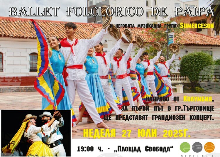 Фолклорният балет „Пайпа“ от Колумбия ще представи концерт в Търговище тази неделя. Събитието ще предложи на зрителите разнообразие от танцови номера, които илюстрират традиционния колумбийски фолклор, а информацията беше предоставена на БТА от организатора Стамен Стаменов.
