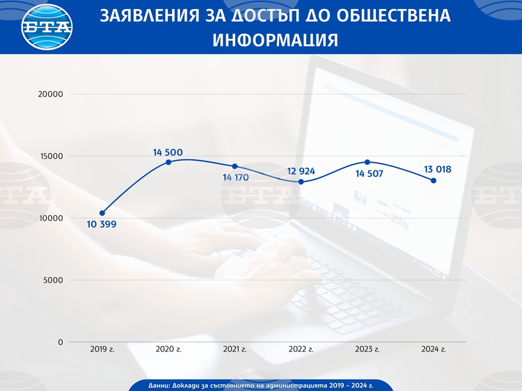 През 2024 г. са подадени 13 018 искания за достъп до обществена информация, по данни от доклад за състоянието на администрацията, публикуван на сайта на Министерския съвет. В доклада се посочва, че тенденцията от предишни години остава – най-много искания подават граждани, следвани от юридически лица с нестопанска цел. Общо 914 от исканията са на журналисти.