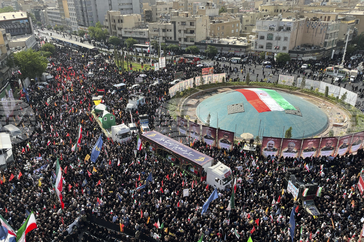 Ковчезите с тленните останки на генерал Хосейн Салами, ръководителя на балистичната програма ген. Амир Али Хаджизаде и други, преминаха с камиони по главния булевард „Азади“ в столицата.