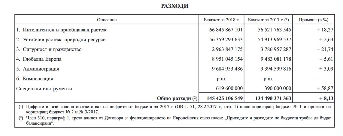 За сегашната многогодишна финансова рамка 2014-2020 година общият бюджет на ЕС е определен на близо 1 трилион евро. Излизането на Великобритания от ЕС, планирано за края на март 2019 година, прави изготвянето на следващия бюджет особено трудно, защото то оставя годишна “дупка” от 12 до 14 милиарда евро в европейските финанси, твърдят от Еврокомисията.