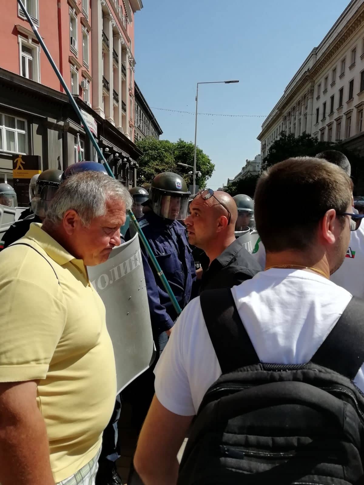 От сутринта на няколко пъти беше направен опит за пробив на полицейския кордон, но без успех. Силите на реда бяха замеряни с яйца и ябълки. Полицията е блокирала района и не допуска граждани да се включат към протестиращите.