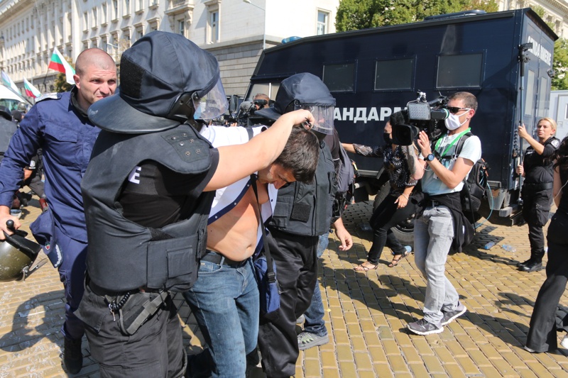 Протестиращите се опитват да пробият полицейския кордон на жандармерията от източната страна на сградата. Десетки протестиращи, както и журналисти бяха обгазени с неизвестен до момента газ.