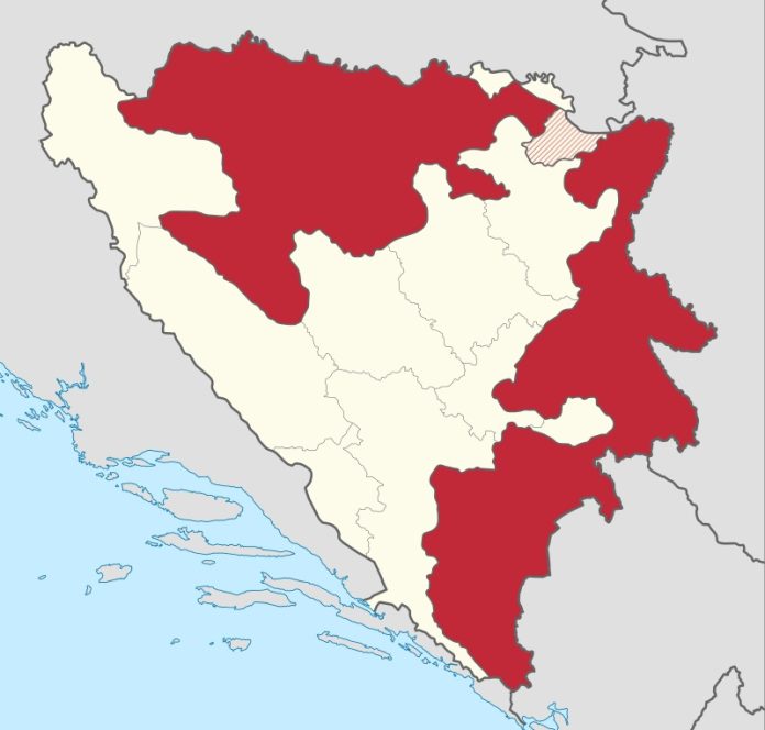 Местоположение на Република Сръбска (в червено) в Босна и Херцеговина