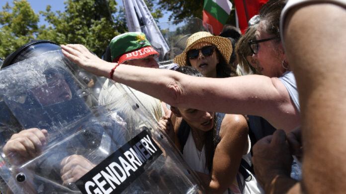 Напрежение и кратки сблъсъци между протестиращи и полиция имаше днес в София на протеста срещу приемане на еврото у нас. Демонстрацията беше организирана от проруската партия в българския парламент „Възраждане“.