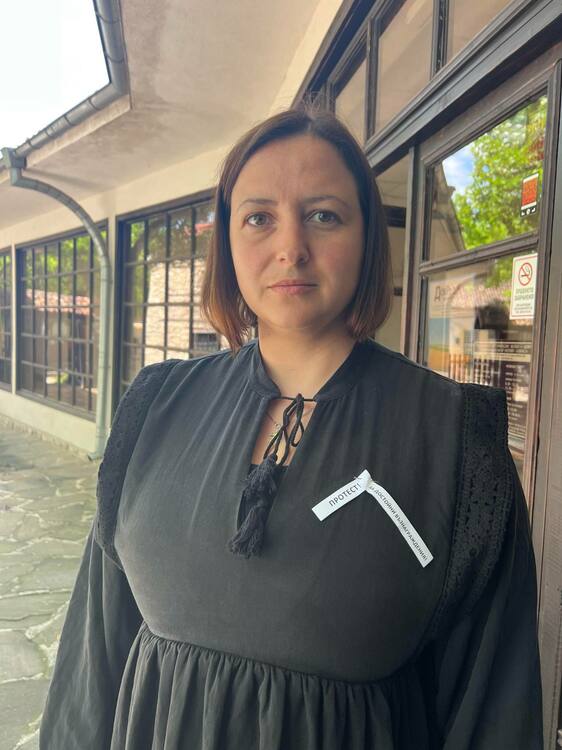 Символично с лентички на реверите си работещите в добричките музеи протестират