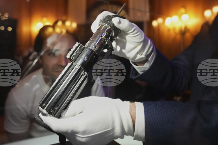 Светлинният меч, с който Дарт Вейдър отсича ръката на Люк Скайуокър в „Междузвездни войни: Епизод V – Империята отвръща на удара“, е експонат в Лондон, преди да бъде предложен на търг в Лос Анджелис в началото на септември, съобщиха АФП и Пи Ей мидия/ДПА.