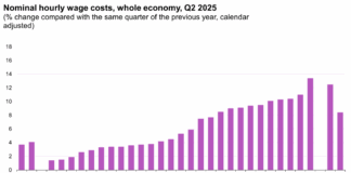 Почасовите разходи за труд на работодателите в бизнес и правителствен сектор, които включват възнагражденията, изплащани на работниците, както и компоненти като социални и здравни...