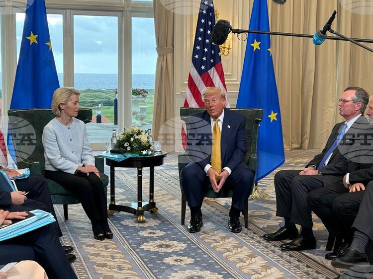 Председателят на Европейската комисия Урсула фон дер Лайен провежда среща с президента на САЩ Доналд Тръмп в Търнбъри, с цел да обсъдят възможностите за постигне на митническо споразумение между Брюксел и Вашингтон, информира Европейският нюзрум (ЕНР) – платформа за обмен на новини между 23 европейски агенции, сред които е БТА.
